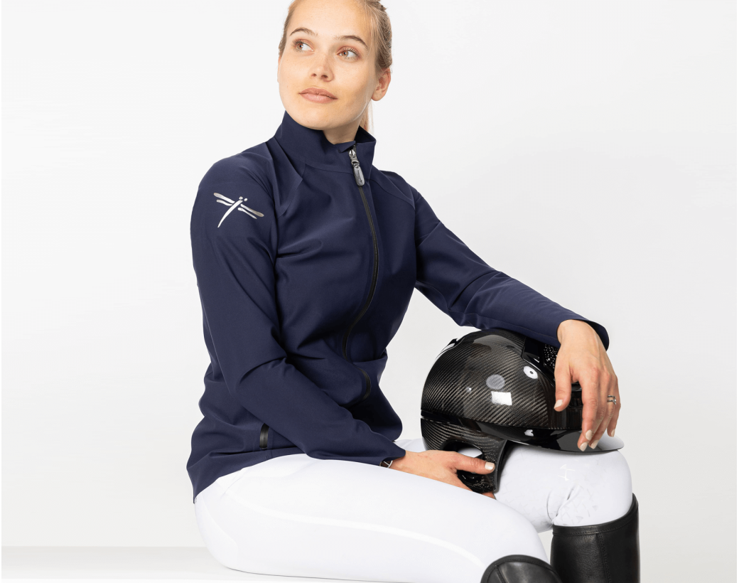 The FREEJUMP dragonfly on the sleeve of the MADDY jacket adds a touch of elegance and distinction.