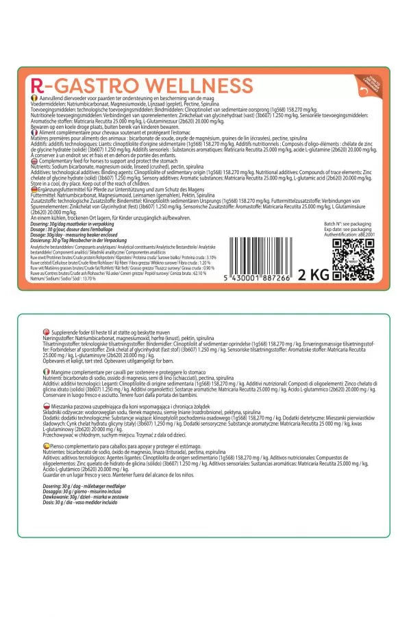 R-Gastro Wellness also contains glutamine which is a substance that protects the gastric mucosa. Magnesium oxide ensures the binding of stomach acid in order to neutralize the stomach content. This product is the best choice for preventing stomach ulcers.